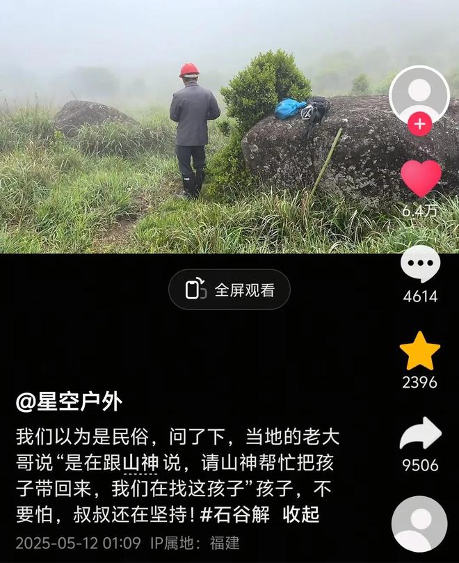 抖音博主“星空户外”在5.12日更新的搜救视频中表示,当地的老大哥(村民)在山上放炮,起初以为就是风俗习惯,万万没想到是流传下来的箴言。